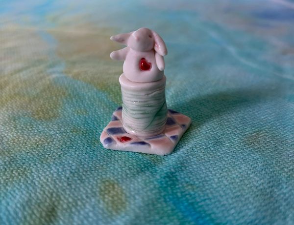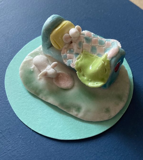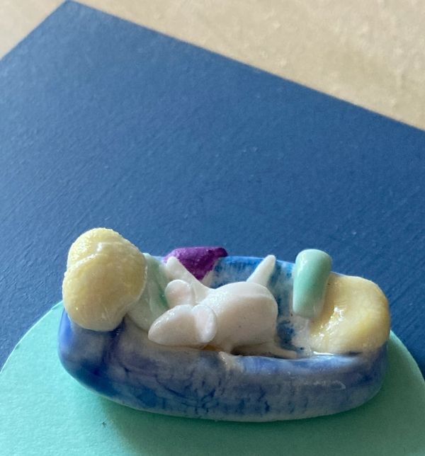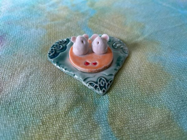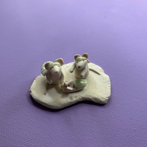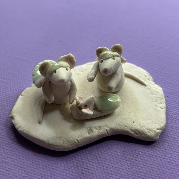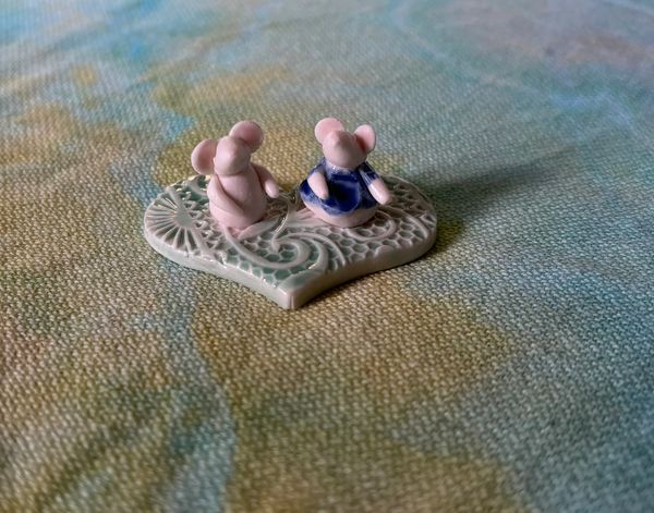 Two porcelain mice relaxing. Under the quilt. For sale $30 incl shipping.