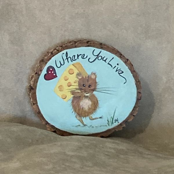 Little mouse carrying his cheese. Oil painted. 4" x 1 1/2" thick.